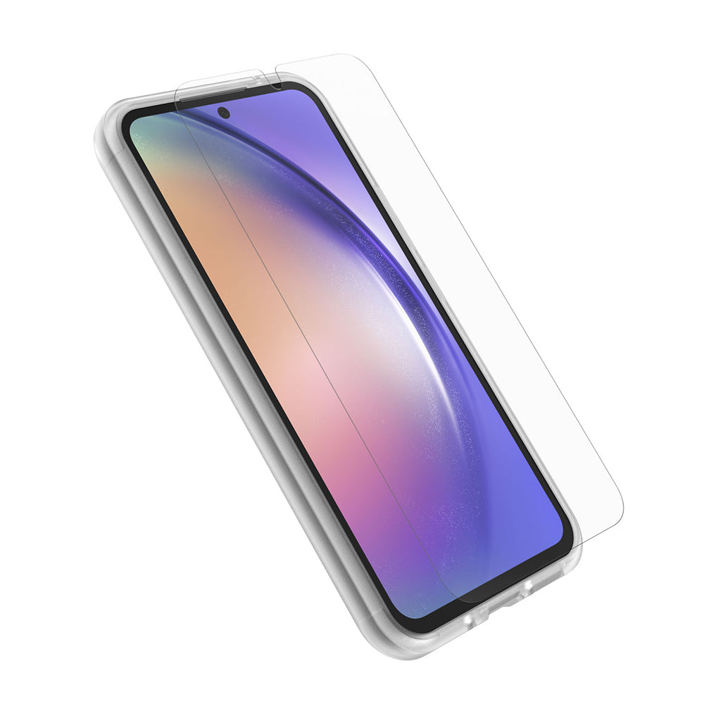 Fully protect your Samsung device with the handy bundle pack from Otterbox. React Series is an ultra-slim, resilient OtterBox case that protects your Galaxy A54 5G from drops and scrapes. Its solid one-piece form is precision designed for your phone and its soft touch edges provide great grip. Trusted Glass installs easily and helps protect your screen from drops, breaks and scratches. The glass resists smudges and fingerprints while maintaining the vivid clarity of your display.