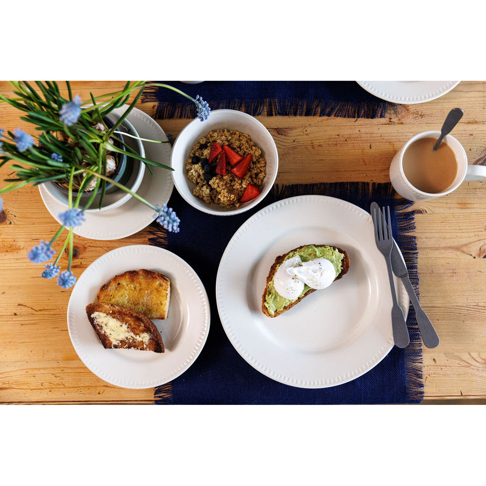 Timeless and elegant, the Mikasa Cranborne 4-Piece Side Plate Set is guaranteed to stand the test of time. Allowing simplicity to reign, these robust side plates are debossed with an organic, dimpled pattern and made from durable stoneware. Thanks to their classic cream glaze, these small plates are a stylish choice for bread accompaniments or afternoon tea. They’re also dishwasher safe for easy cleanup and come covered by a 10-year guarantee.