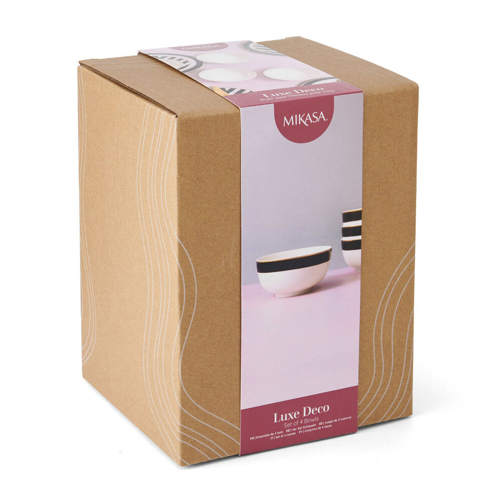 Take it back to the 1920s this season with the Mikasa Luxe Deco 4-Piece Cereal Bowl Set. Inspired by the bold, geometric prints of the Art Deco era, these bowls are destined to add a decadent finish to any table setting.