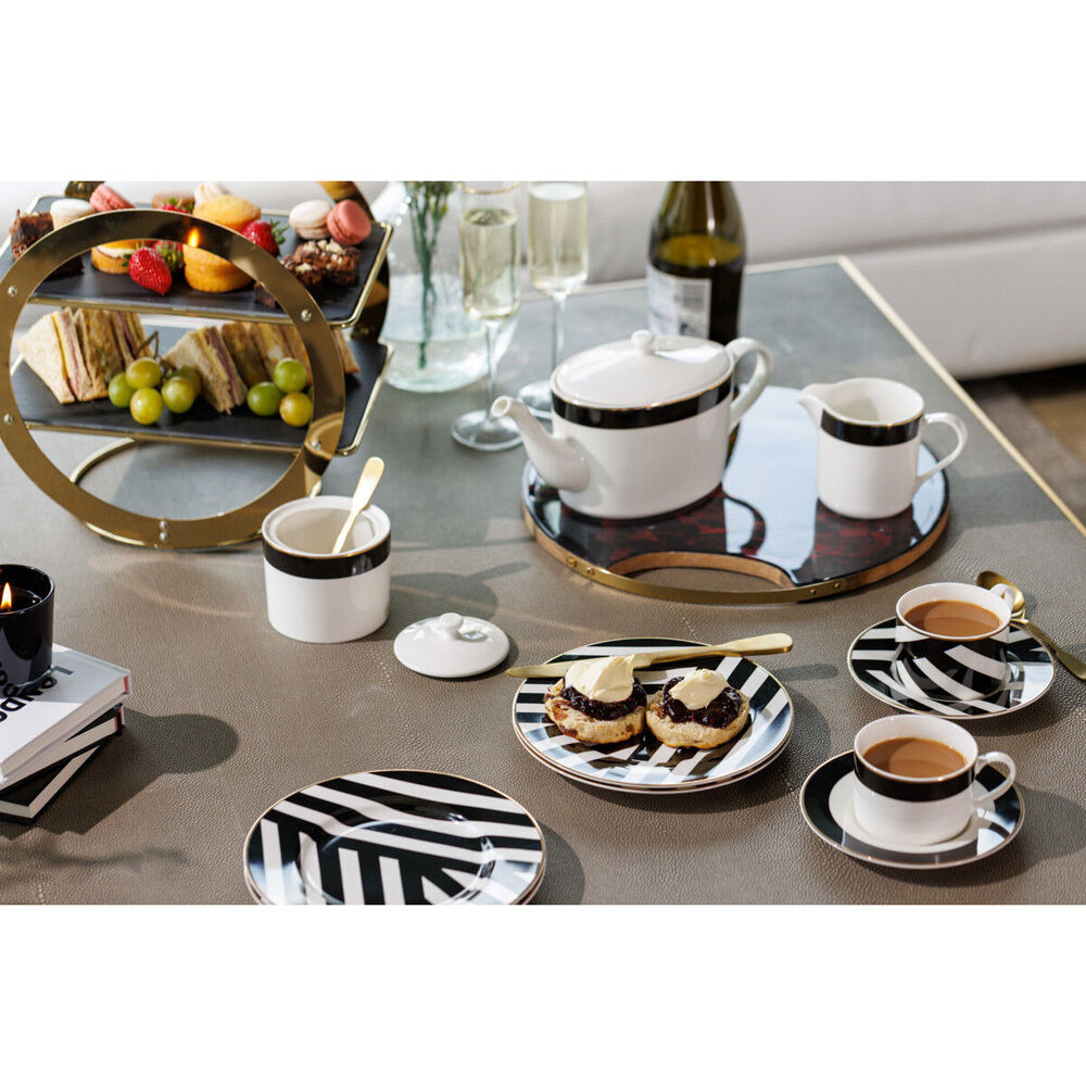 Take it back to the 1920s this season with the Mikasa Luxe Deco China Sugar Pot and Creamer. Inspired by the bold, geometric prints of the Art Deco era, this tea set is destined to add a decadent finish to any table setting.