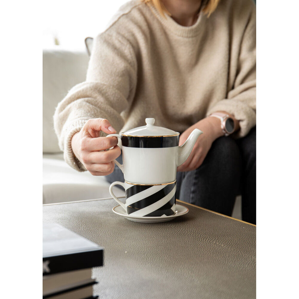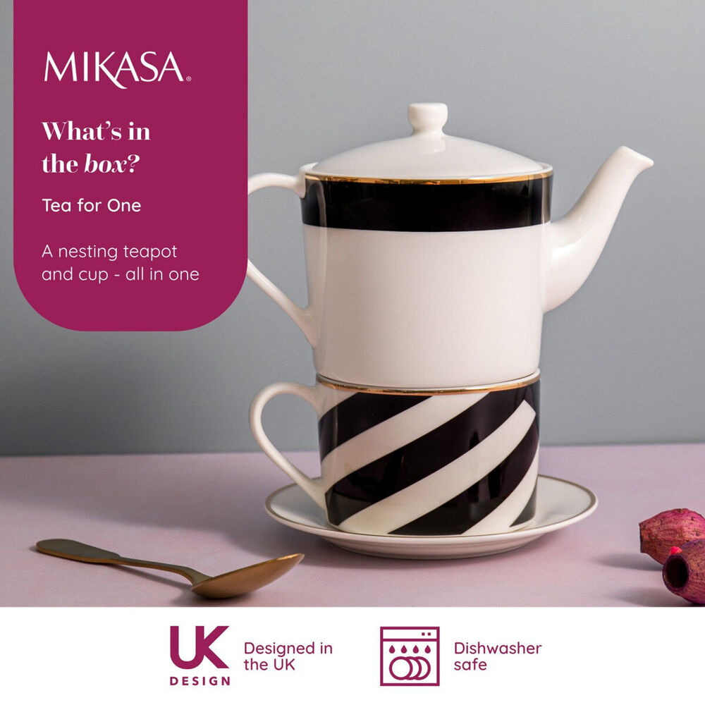 Take it back to the 1920s this season with the Mikasa Luxe Deco China Tea for One Set. Inspired by the bold, geometric prints of the Art Deco era, this tea set is destined to add a decadent finish to any table setting. It includes a 500ml teapot and a 250ml teacup and saucer.