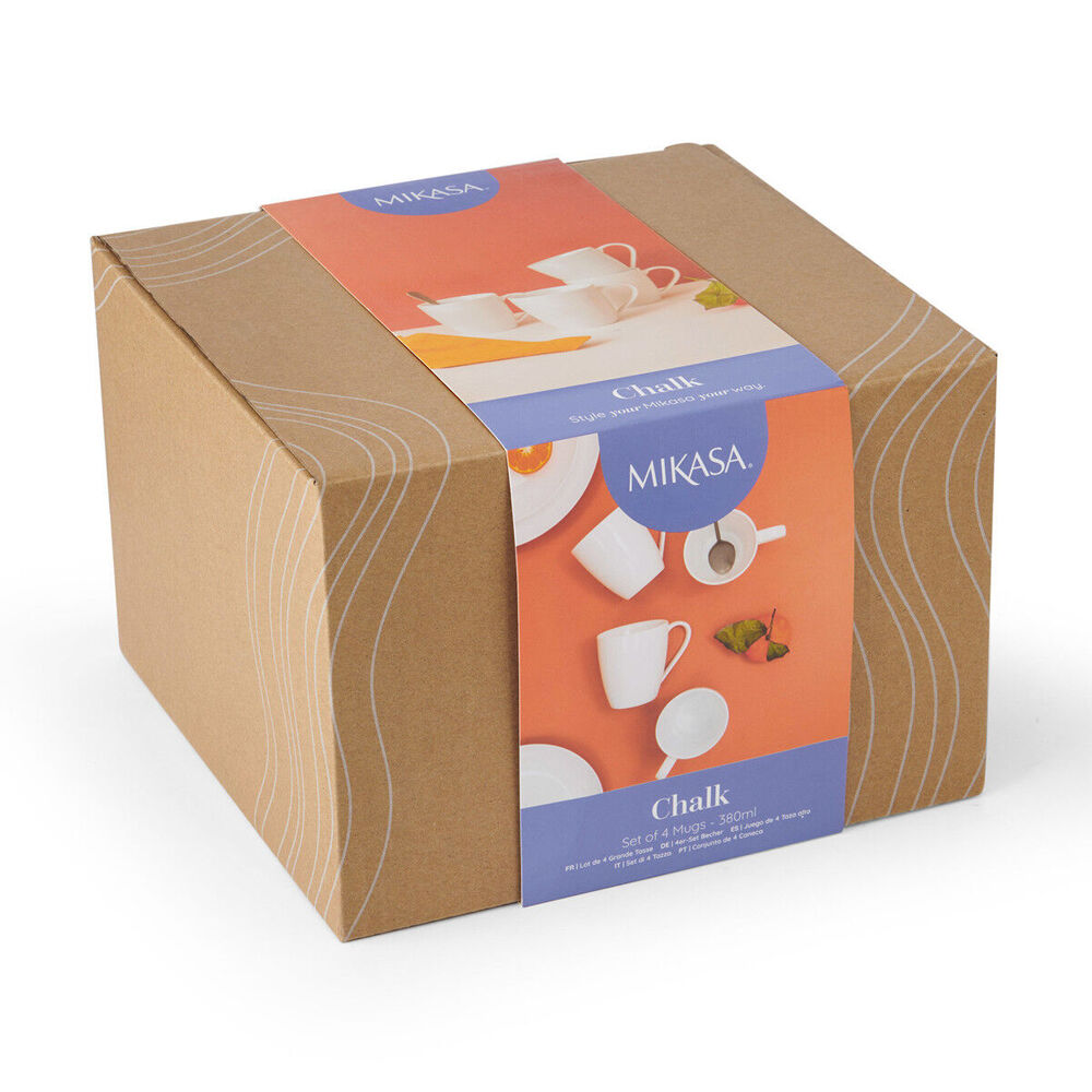 4pc Mikasa Chalk Kitchen Porcelain Mug Set, 380ml, White