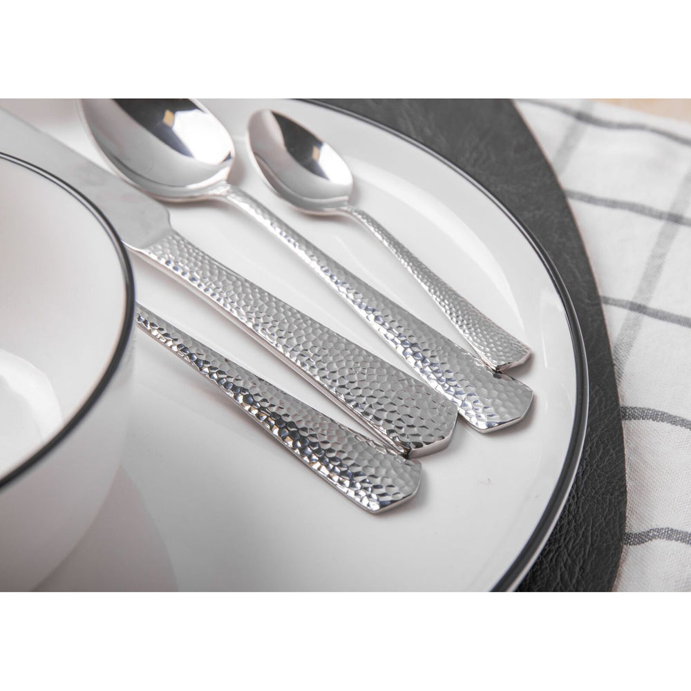 - With a focus on expert craftsmanship, this silver cutlery set is made from rust-resistant 18/0 stainless steel that’s enhanced with hammered detailing and a matte finish.