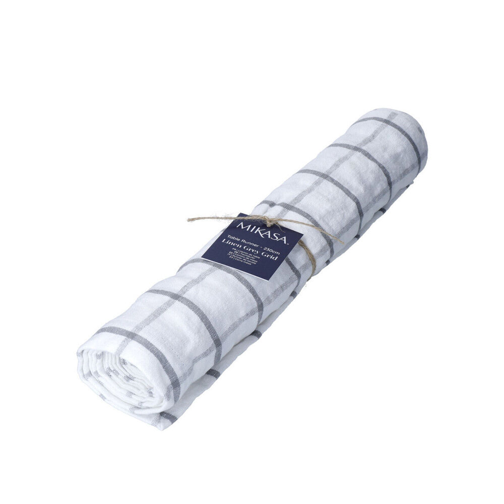 Mikasa Industrial Check Linen-Blend Table Runner, 230 x 33cm
