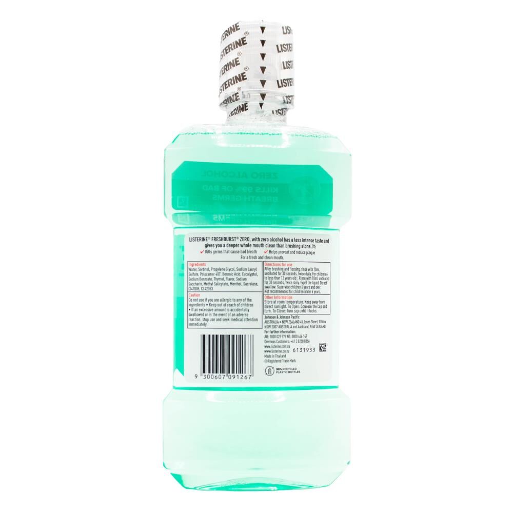 Protect your mouth from germs and get fresh breath with Listerine Freshburst Zero Mouthwash . It kills 99% of bad breath germs and gives you a deeper whole mouth clean than brushing alone.
