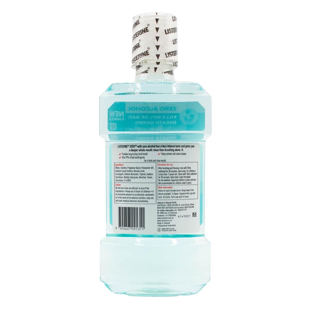 Listerine Zero Alcohol Mouthwash with fluoride helps kill germs that cause bad breath and plaque, protects gums & helps prevent cavities.