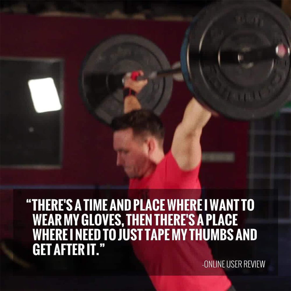 Protects thumbs and provides increased grip during high volume barbell lifts