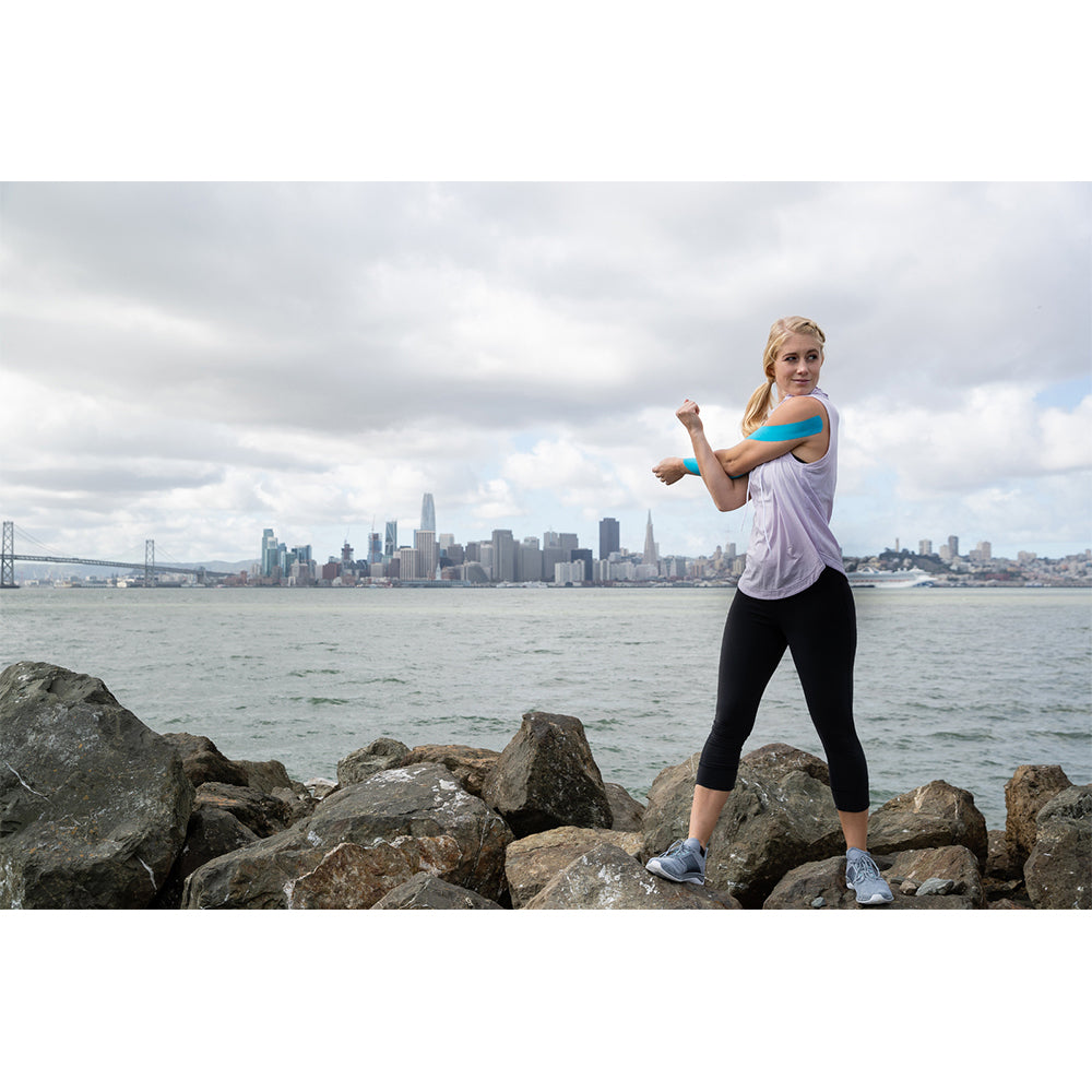 When applied properly, RockTape kinesiology tape microscopically lifts the skin away from the muscle and fascia below, increasing blood flow, which relieves swelling, delays fatigue, and increases kinesthetic awareness