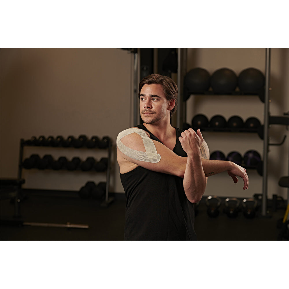 When applied properly, RockTape kinesiology tape microscopically lifts the skin away from the muscle and fascia below, increasing blood flow, which relieves swelling, delays fatigue, and increases kinesthetic awareness