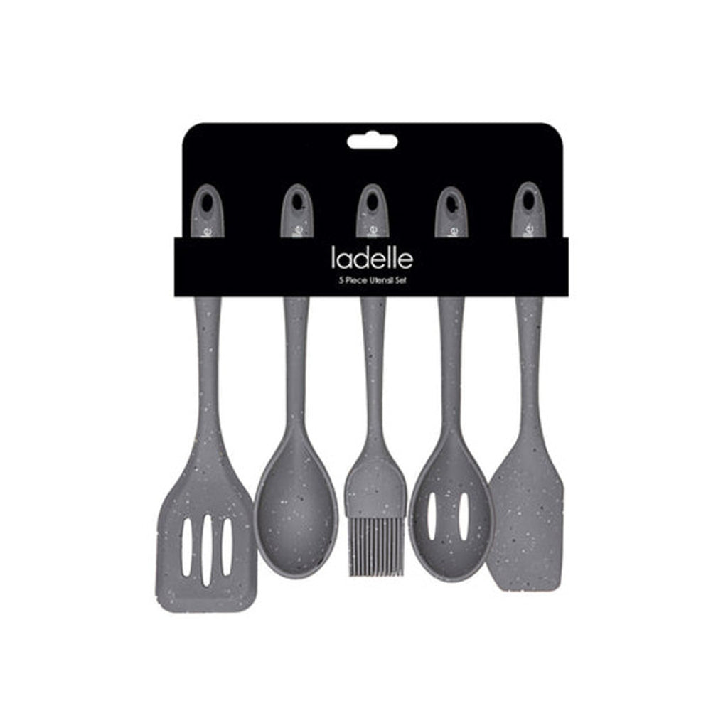 5pc Ladelle Craft Grey Speckled Silicone Cooking/Serving Utensil Set