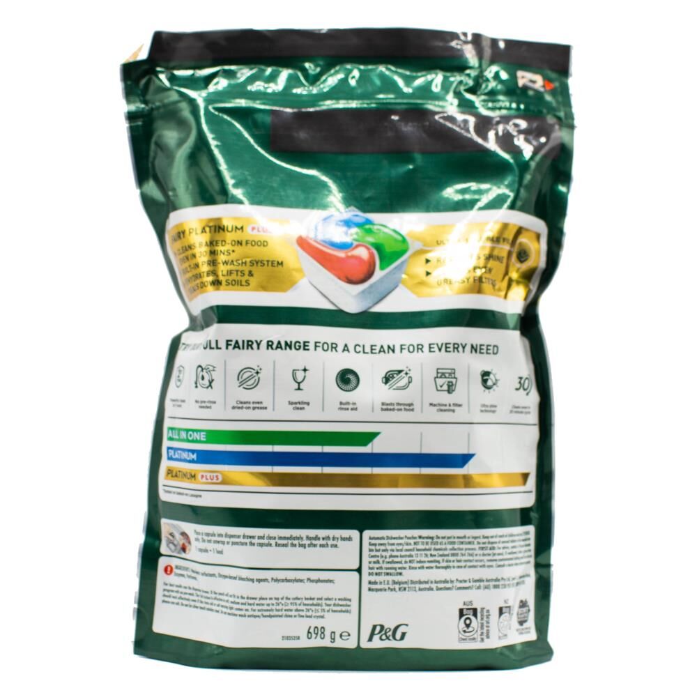 Fairy Fresh Scent Platinum Plus Automatic Dishwasher Tablets with Built In Prewash Power, prewashing some of the toughest grease and burnt on bits so you don't have to. Designed to be effective in short cycles