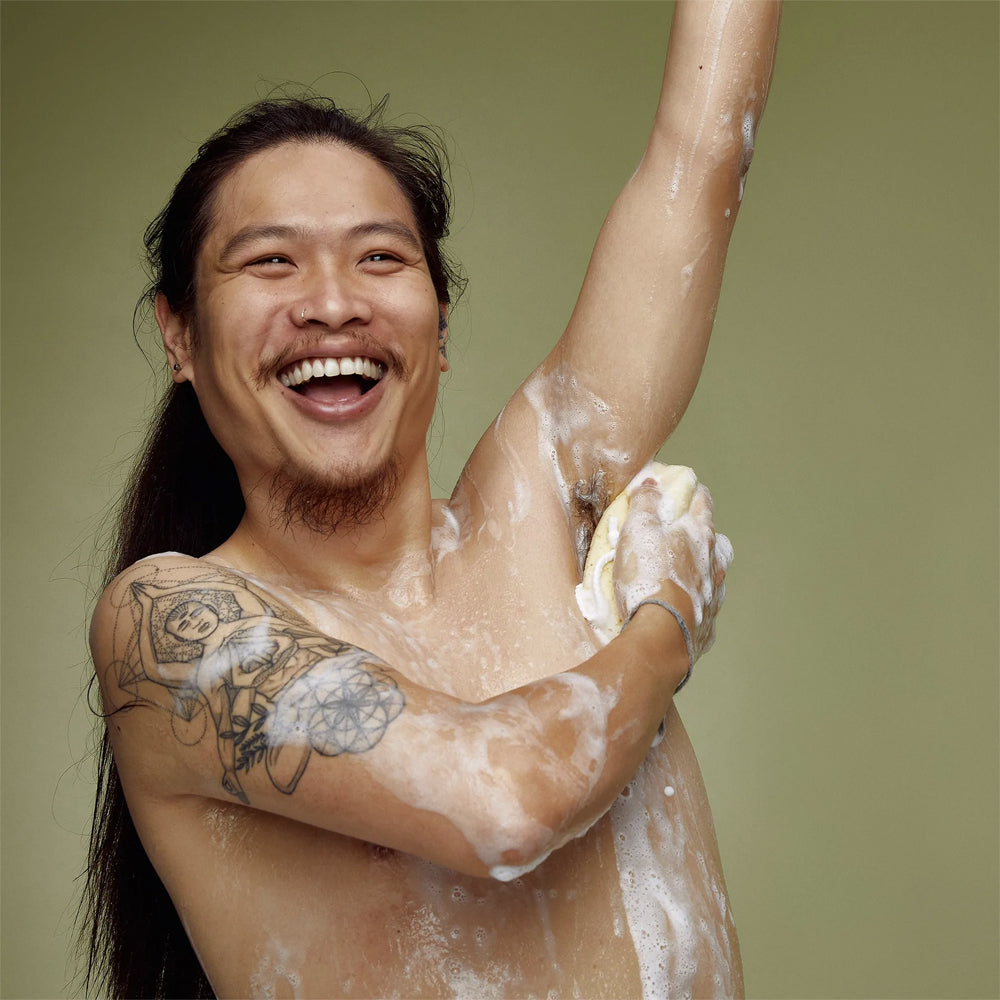 A head-to-balls-to-toe foaming wash. It’s super fresh and a bit mountainy. Imagine sprinting through a pine forest, tumbling off a cliff edge and landing in a soft bed of spearmint – that’s the vibe.