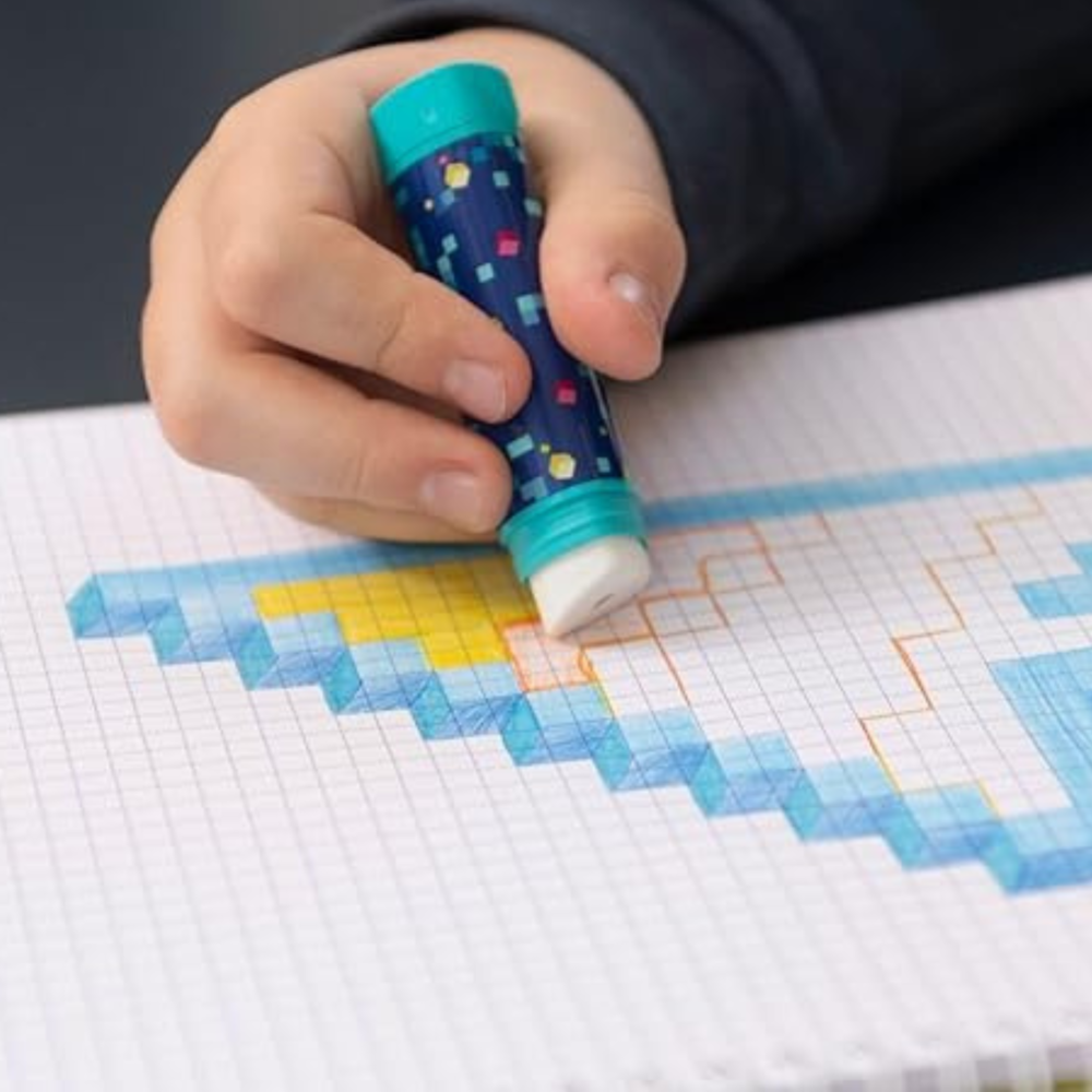 A tube eraser, ergonomic, clean, and as easy to use as a tube of glue! The Pixel Party tube eraser is the new practical and trendy eraser from Maped! Its decor will make it a product loved by kids.Its rotating system to get the eraser out of its tube is easy to use. The eraser is efficient and precise.Blister card including 1 tube eraser + a refill.