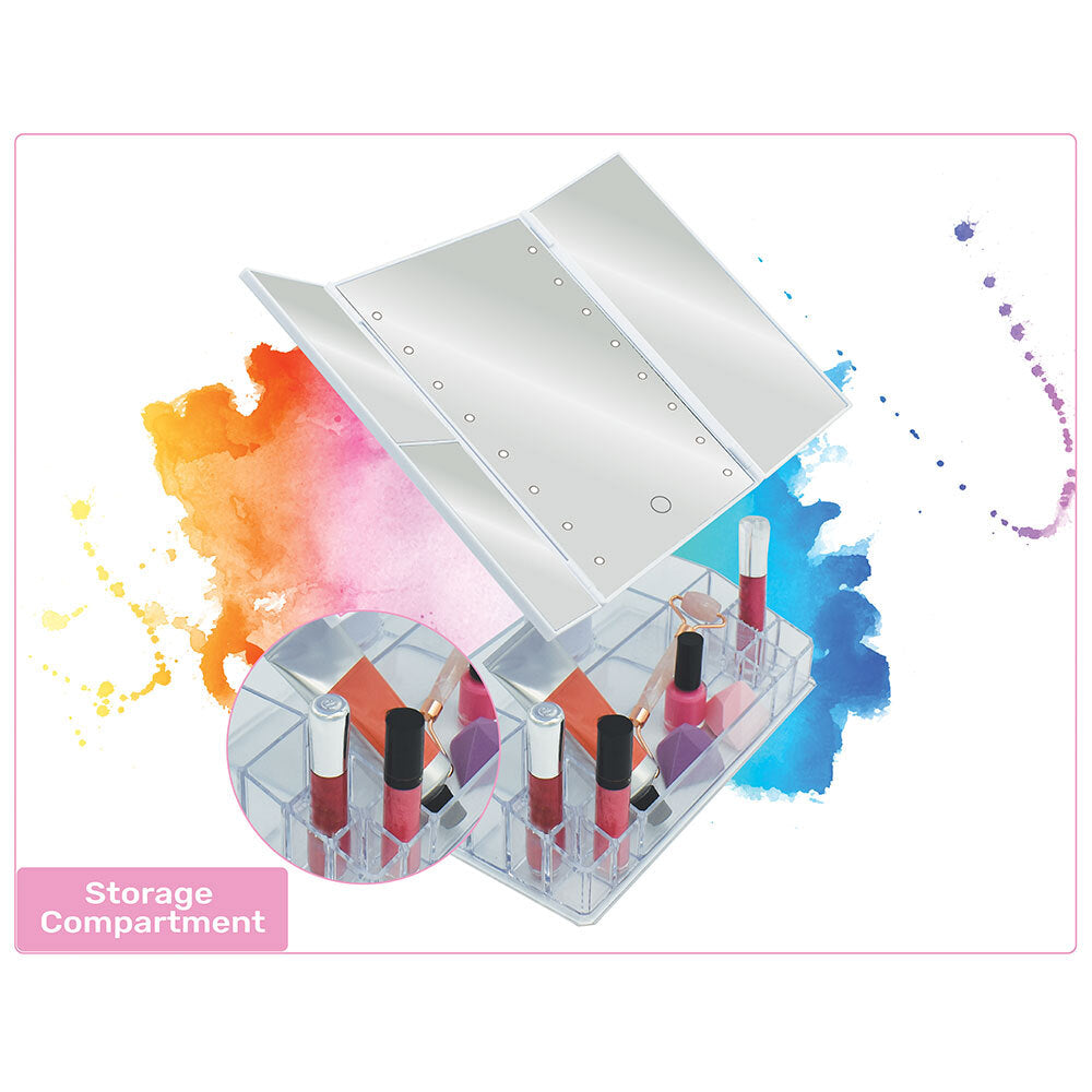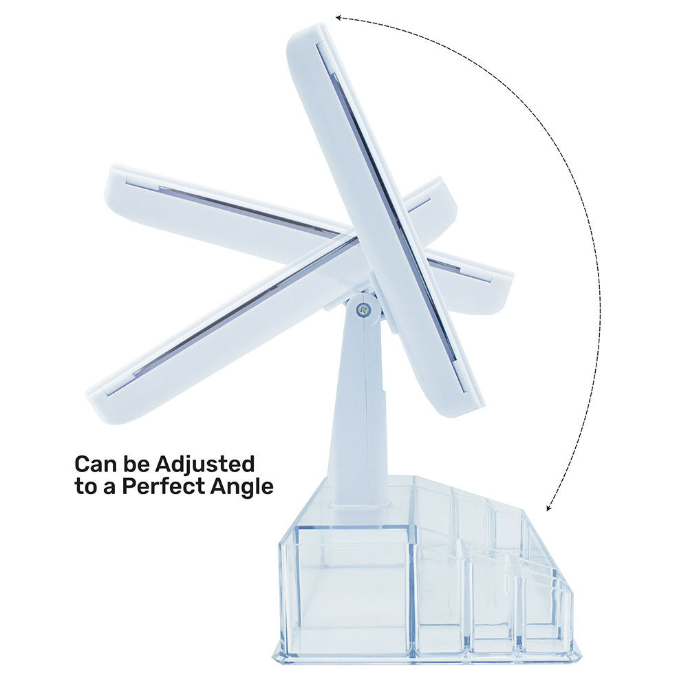 This Compact and Portable mirror also contains built-in storage Compartments, so you never have to worry about forgetting or losing your accessories again. With multiple magnifications to view from, you can always be sure that your styling is on Point! And you never miss a spot.