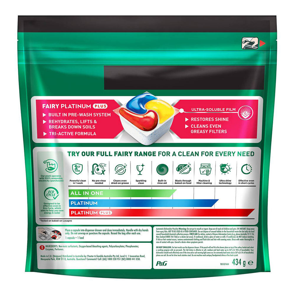 Fairy platinum plus all in one Automatic Dishwasher Tablets with Built In Prewash Power, prewashing some of the toughest grease and burnt on bits so you don't have to.