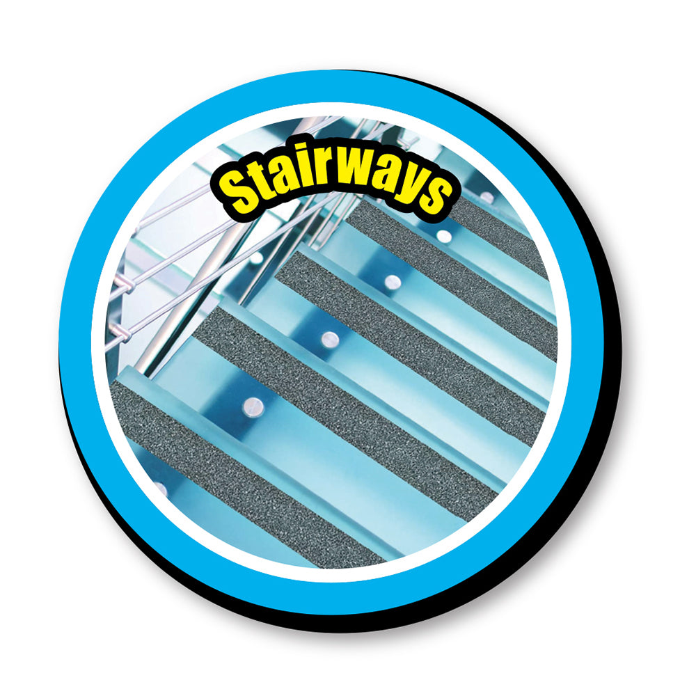 80 grit tape that reduces slips and falls. Sticks to most surfaces and is long lasting. Leaves no residue.