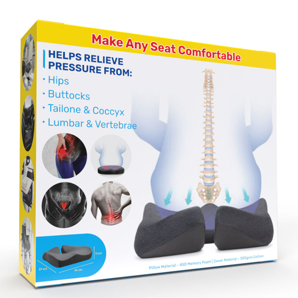 Help relieve pressure from all day sitting. Made from 45D memory foam with a 300gsm cotton cover. This anti slip seating pillow provides comfort all day long. Ideal for office chairs, car seats and more.