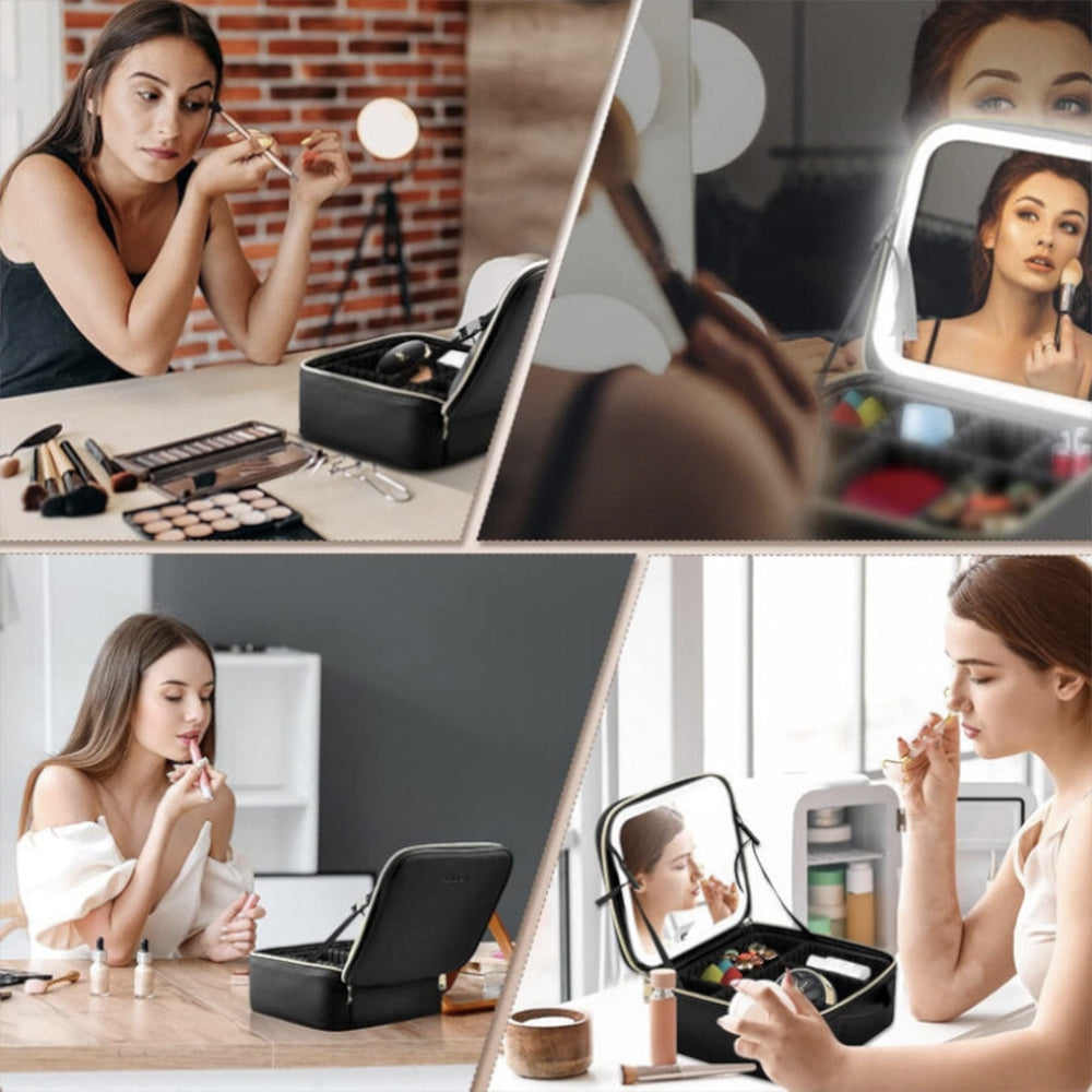 Cosmetic Bag With LED Mirror Black. Keep all of your cosmetics in one place with the Impressions Cosmetic bag. The bag has a built in rechargable LED mirror that m