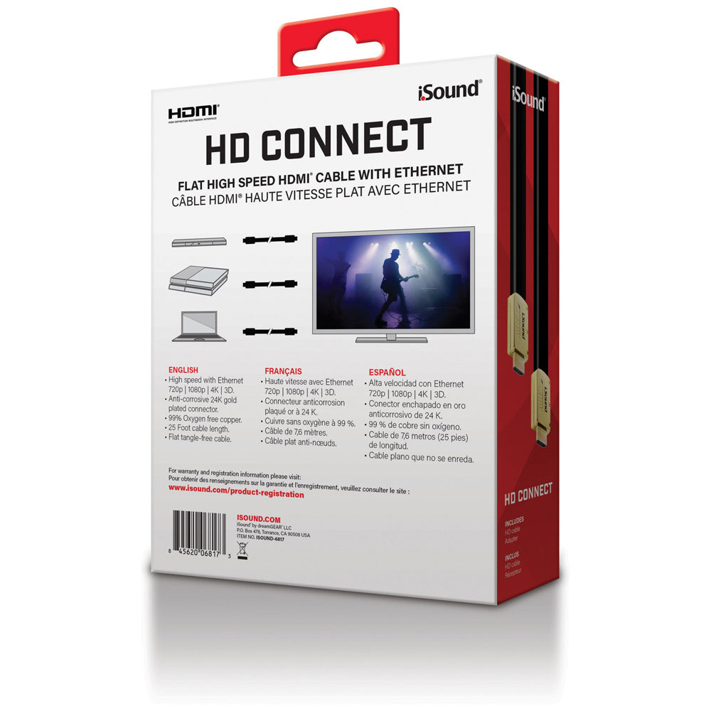 iSound HD Connect HDMI Cable Male w/ Ethernet 25ft Connector Black/Gold