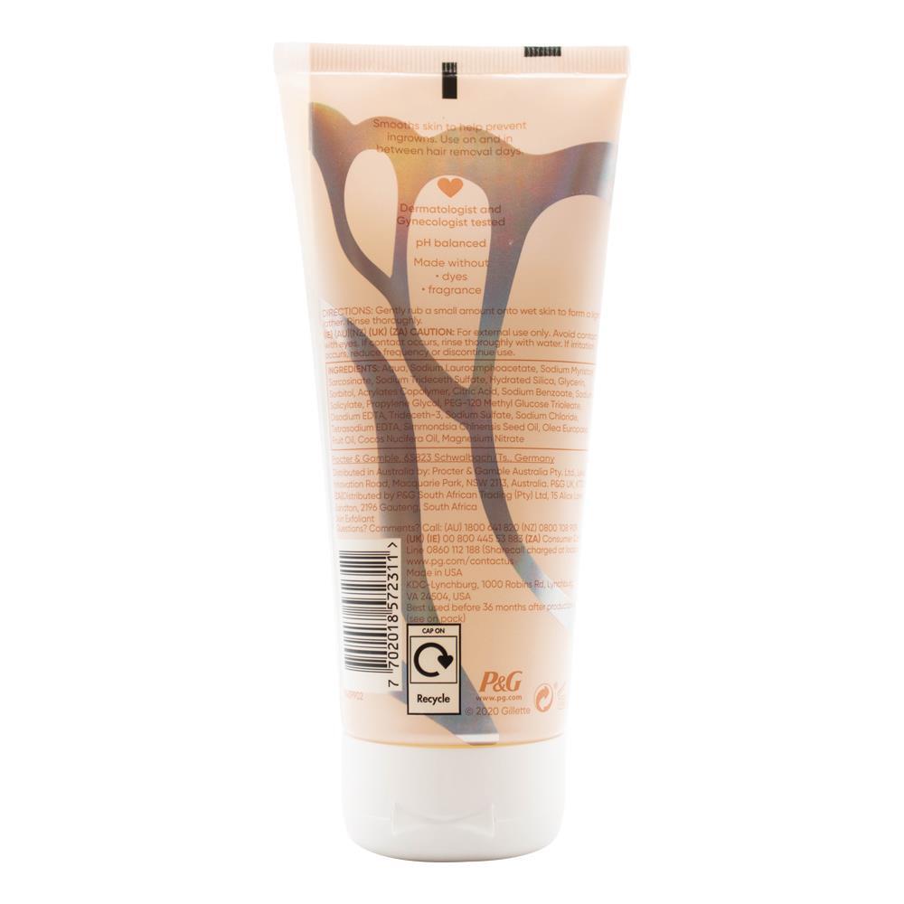 Dermatologist and gynecologist tested, this product is pH balanced and free of parabens, dyes, fragrances, and silicones. Use it on hair removal days or in between to gently exfoliate and prepare your skin for a comfortable shave.