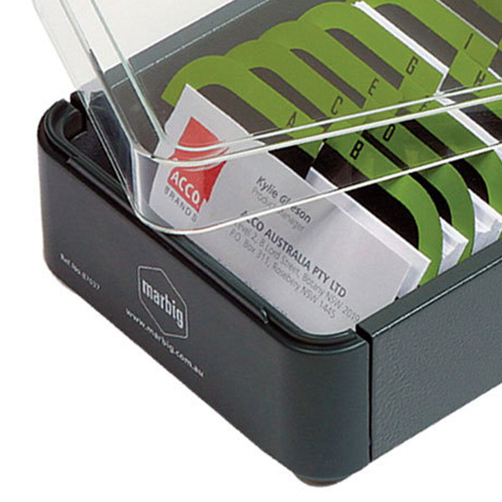 Keep contacts at your fingertips with the Marbig Business Card Filing Box!