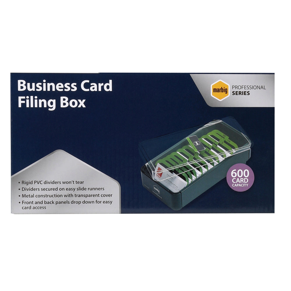 1 x Marbig Pro Series 600-Slot Metal Business Card Filing Box w/ Clear Lid