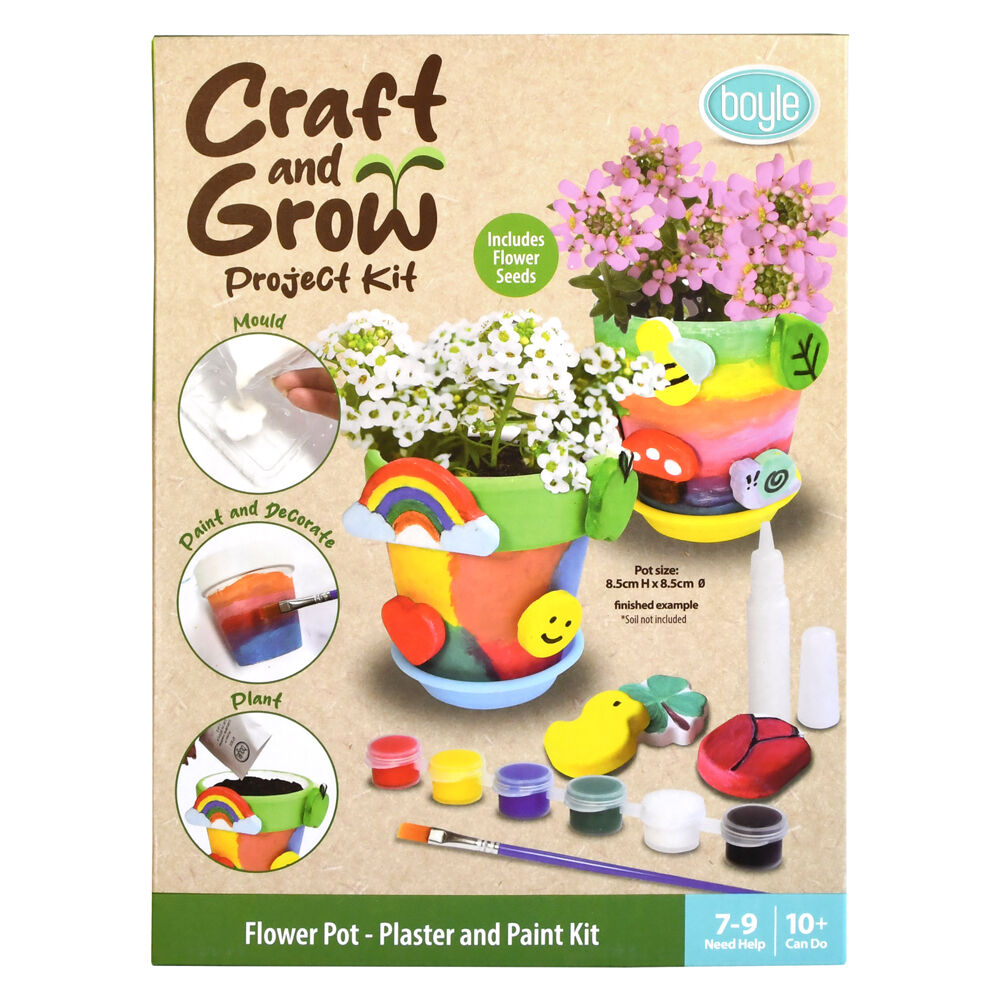 Boyle Craft & Grow Plaster & Paint Kit Flower Pot w/Seeds Kids Activity 10+