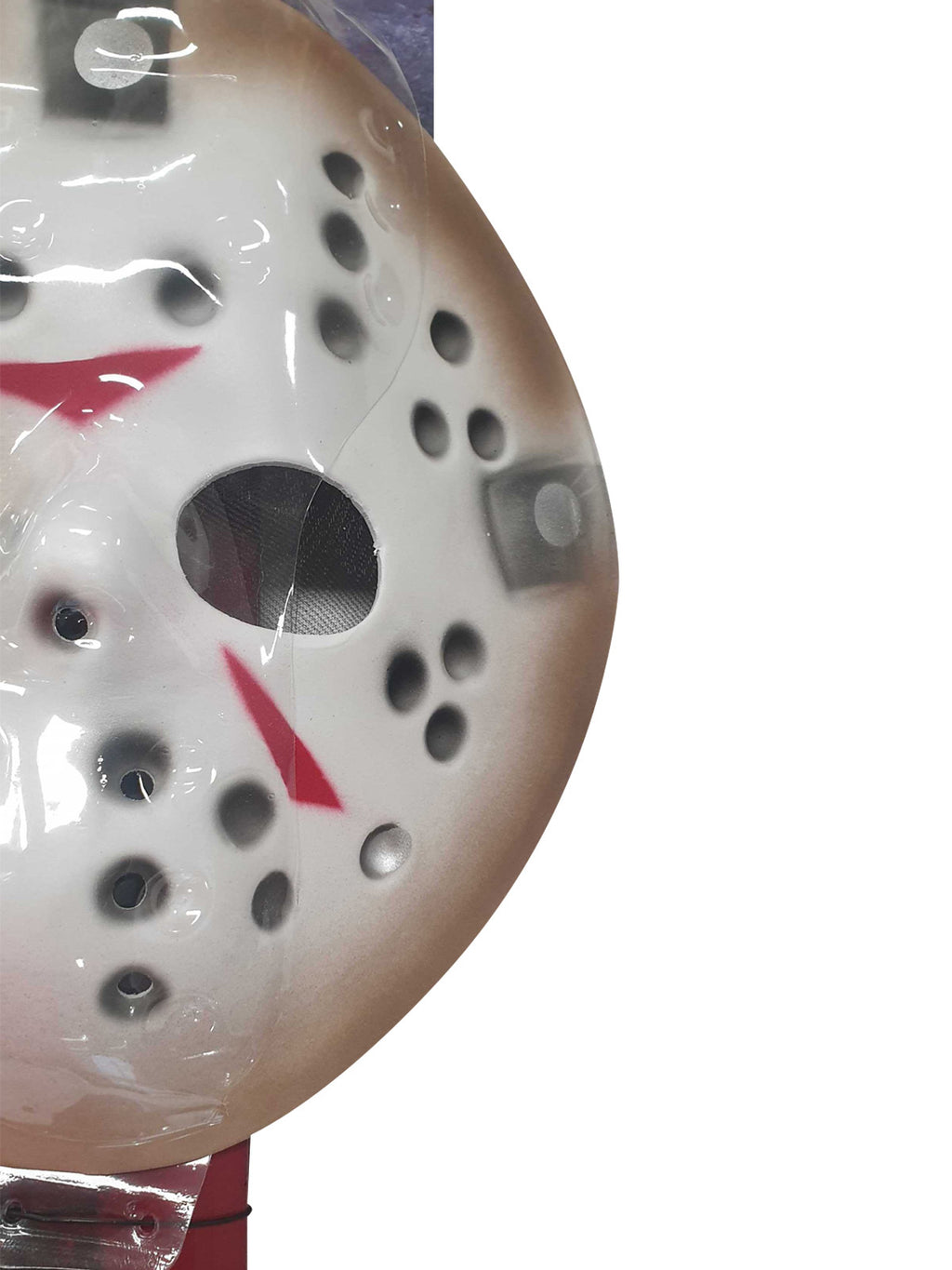 - Mask is trademark hockey mask as worn by Jason Vorhees