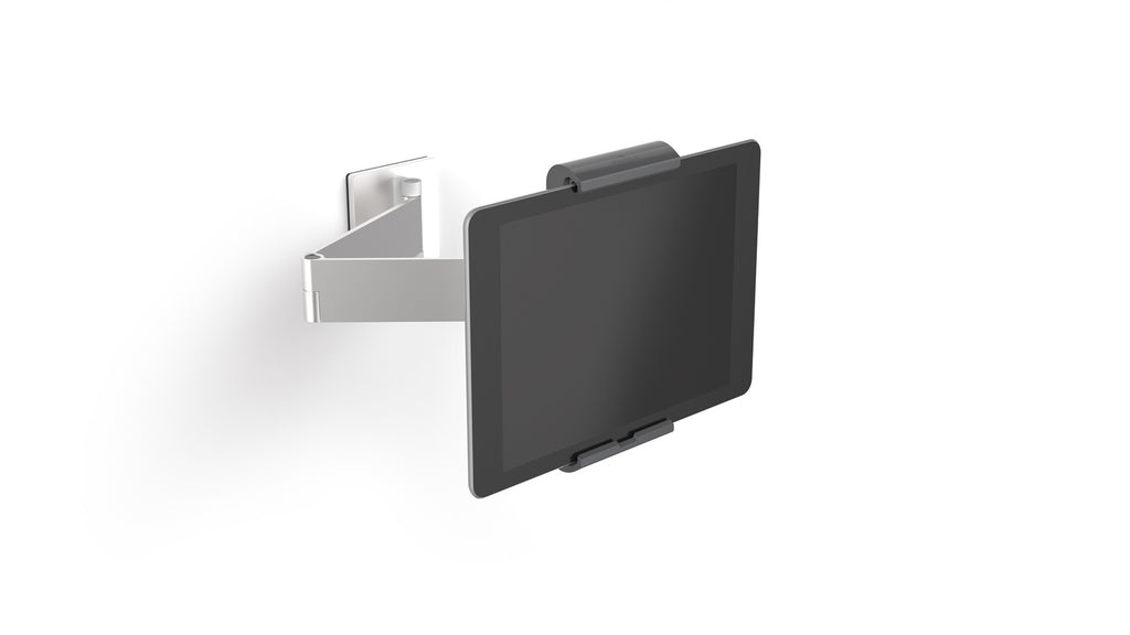 This attractive wall tablet holder with swing arm can be used for numerous areas and applications such as a workspacs and interactive information points. The flexible support arm offers several setting options to ensure optimal readability of tablets when fastened to walls.