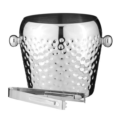 Spencer Hammered Stainless Steel 13cm Ice Bucket w/ Tongs - Silver