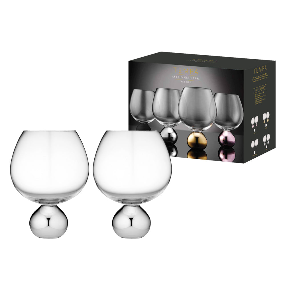 2pc Tempa Astrid 600ml Crystal Gin Glass Set - Silver