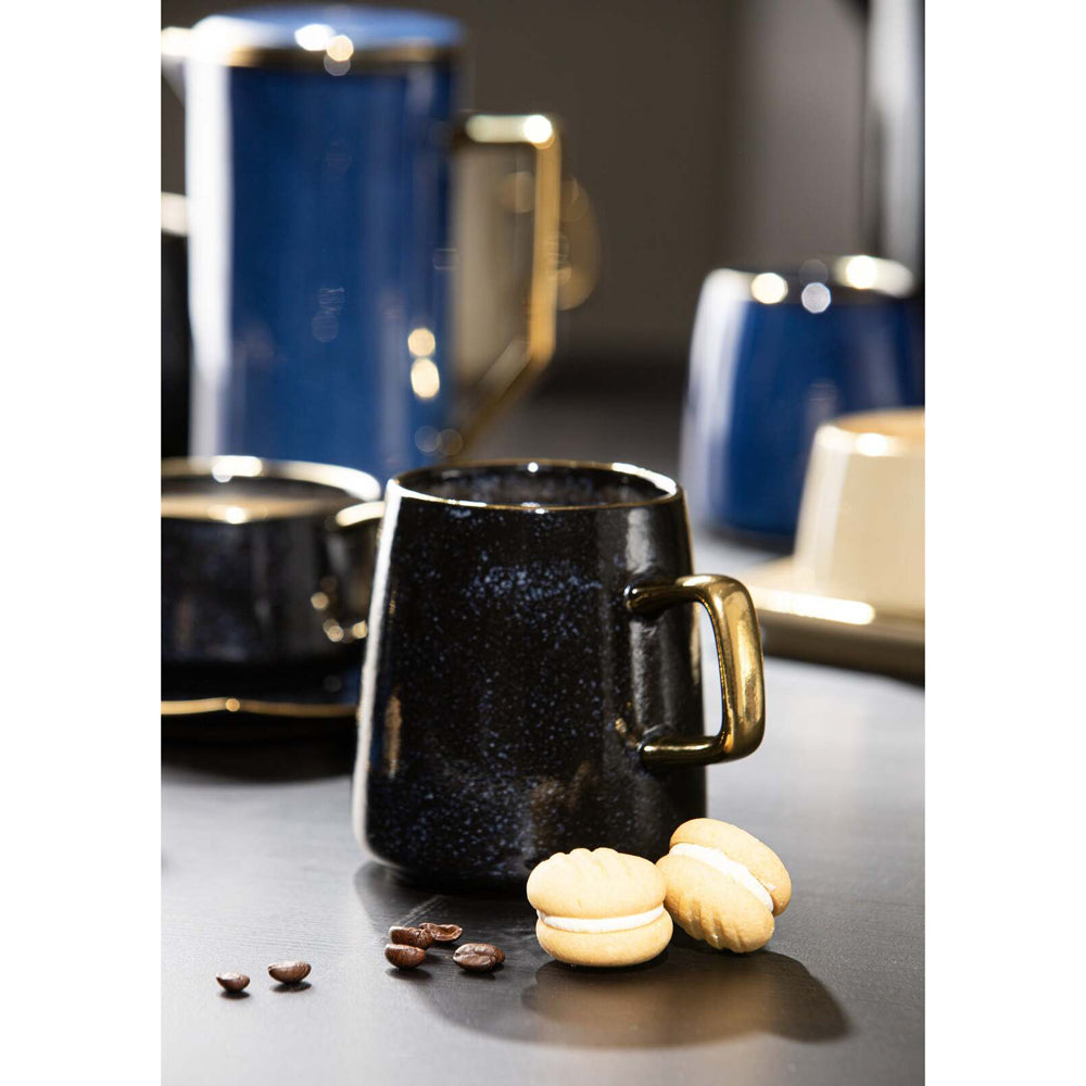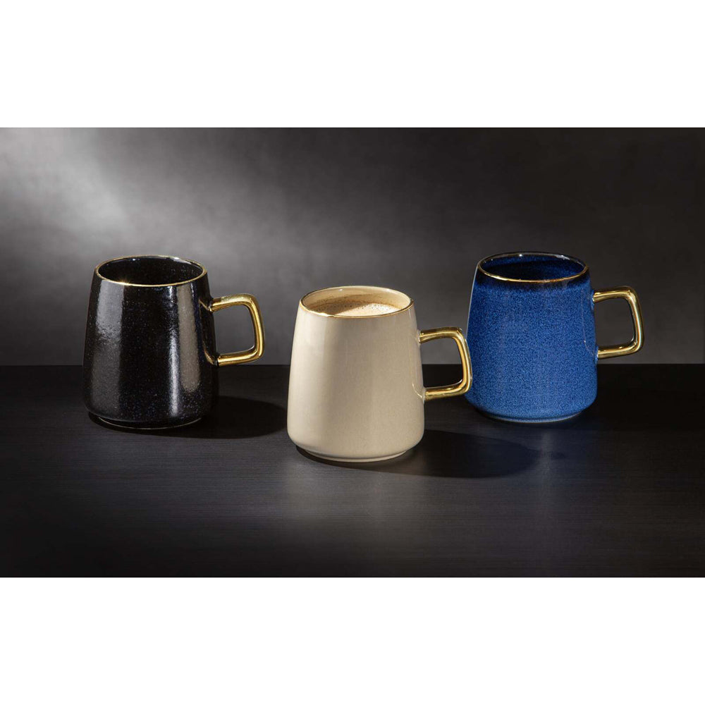 Hand painted gold detailing. Luxe reactive glaze. Modern shapes. Elevate your drinkware