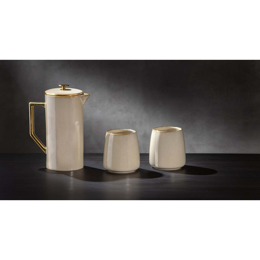 Hand painted gold detailing. Luxe reactive glaze. Modern shapes. Elevate your drinkwareMaterial: New Bone China/SSColour: Beige