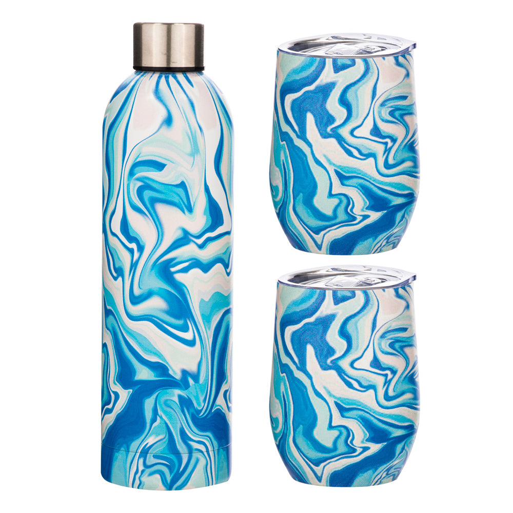 3pc Porta Summer Swirl Stainless Steel Insulated Drinkware Set - Blue