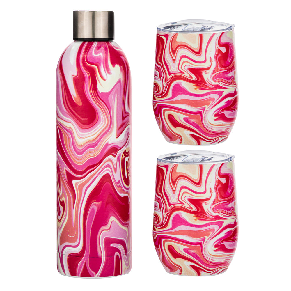 3pc Porta Summer Swirl Stainless Steel Insulated Drinkware Set - Pink