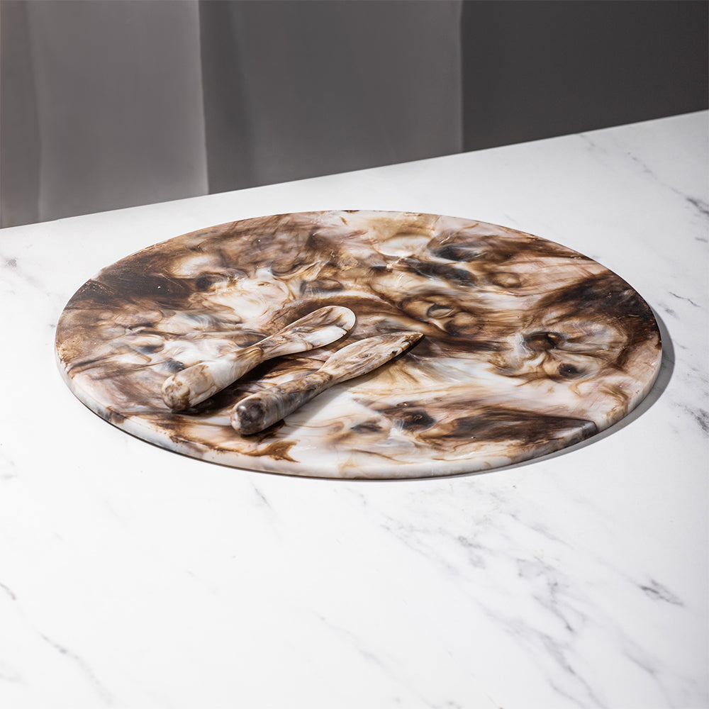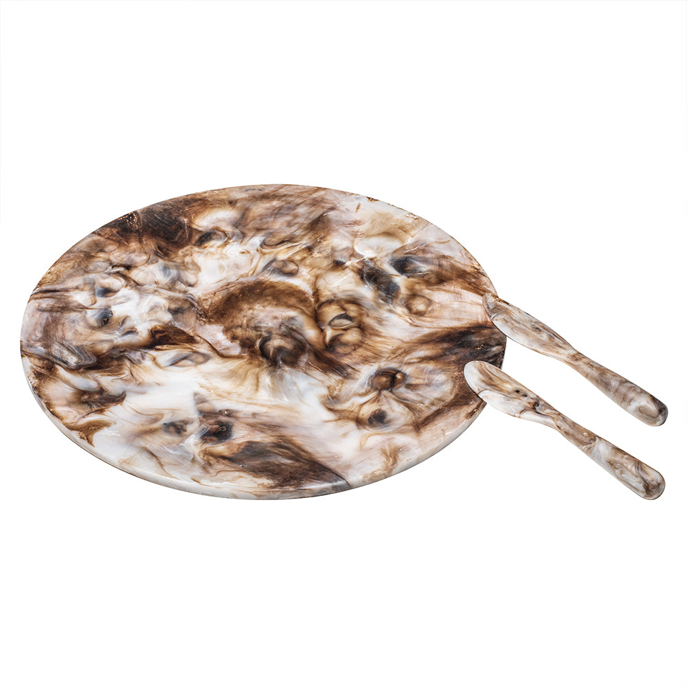 3pc Tempa Marlow Polyresin Cheese For One Knife/Board Set - Espresso