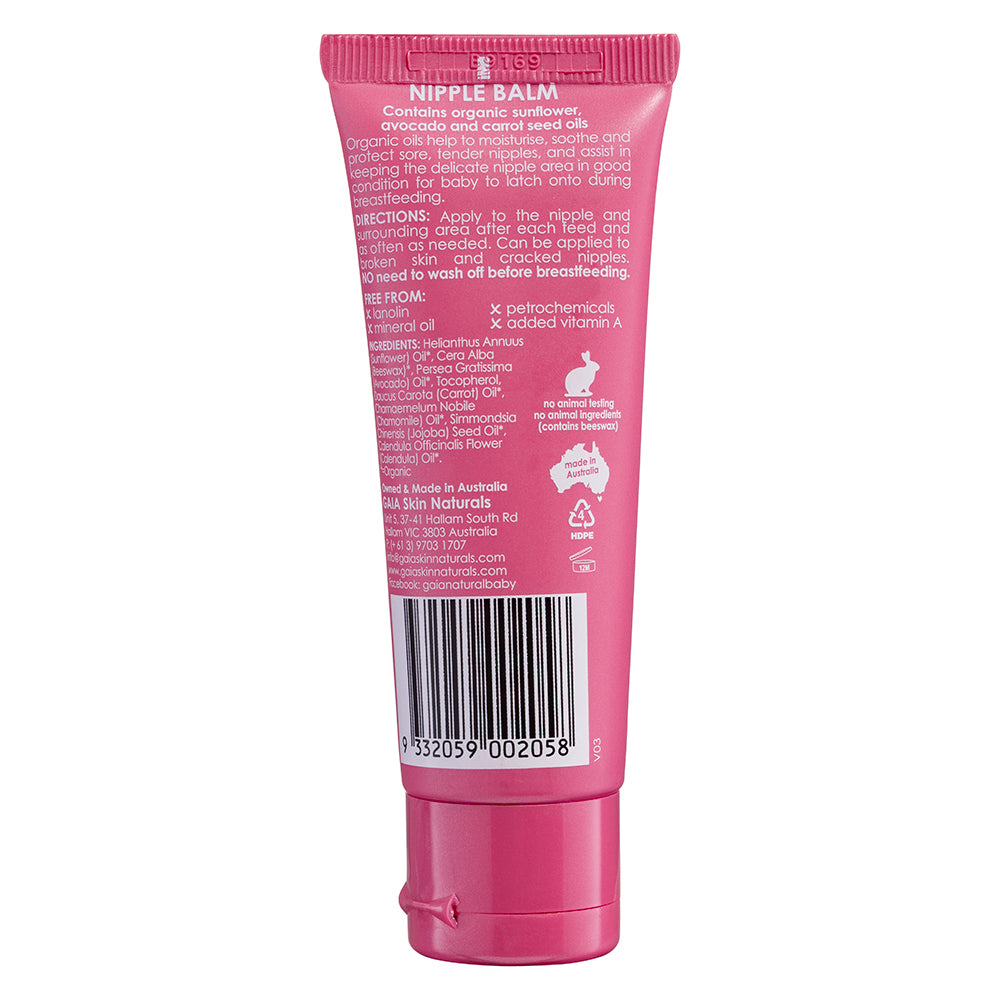 FREE from lanolin, petrochemicals and mineral oil, GAIA nipple balm is made from organic oils, including sunflower and avocado, so there is no need to rinse before feeding.
