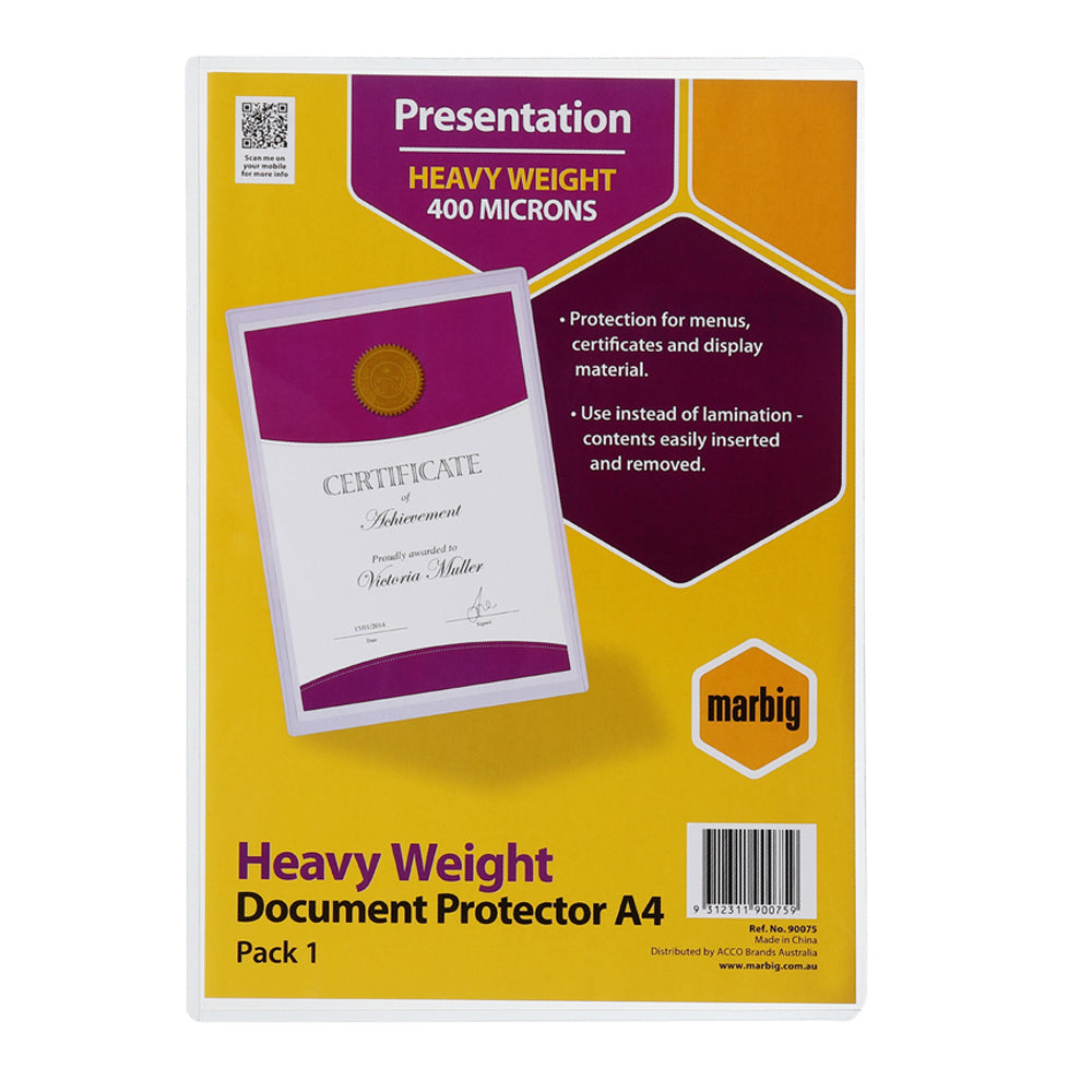 1 x Marbig PVC A4 File/Certificate Document Protector - Clear