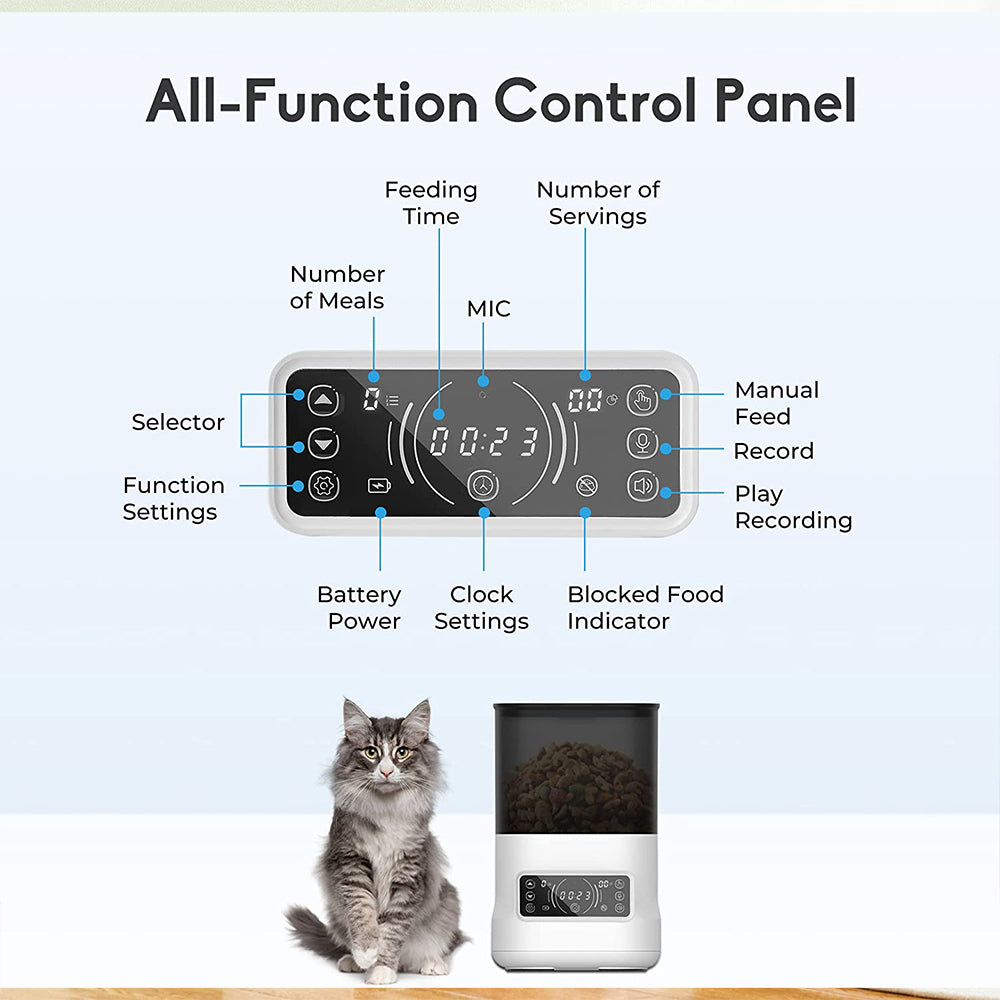 With the F12 Cube Programmable Feeder, you can set and schedule up to 6 meals a day, with up to 39 portions per meal, directly on the feeder's control panel. No internet connection is required, making it easy to set up and use. You can also record a personalized message to announce meal times to your pet, adding a personal touch to their feeding routine.