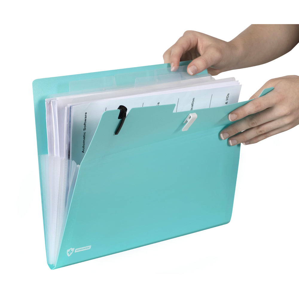 The Marbig Professional expanding file is simple to use and portable so you can do all your filing on-the-go. Made using PP with antimicrobial protection that inhibits the growth of bacteria on the file's surface (excludes band and latch).