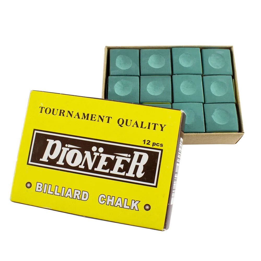 Pioneer Chalk 12pk is a tournament quality cue chalk for billiards, pool or snooker players.Excellent all-round chalk used by many players in the various cue sports due to its good quality and value.Comes in black, blue, green or red.