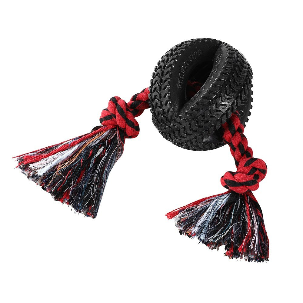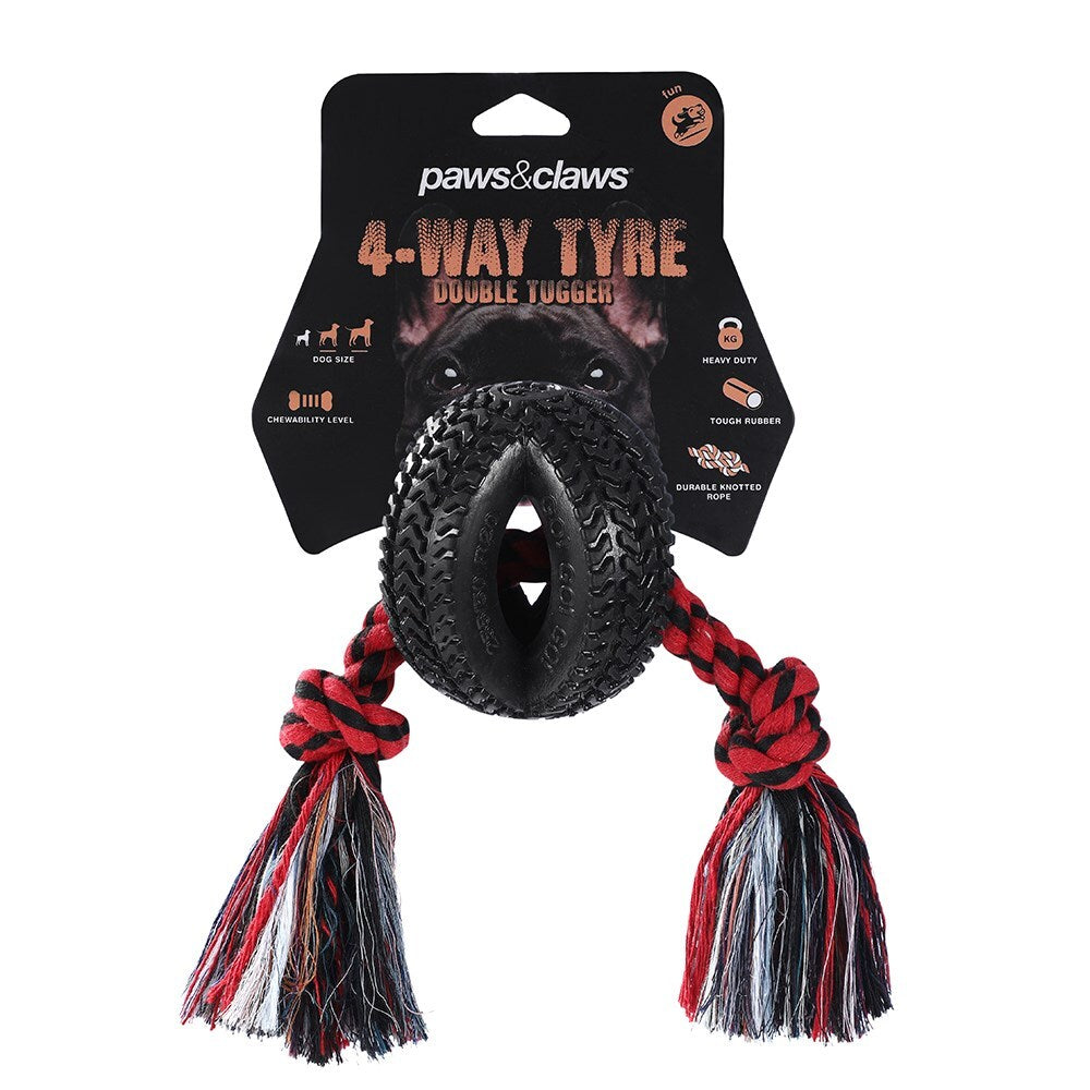 Calling all strong biters to try the Paws & Claws 4-Way Tyre Double Tugger Toy.