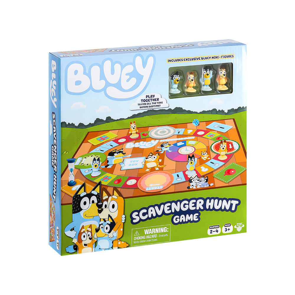 It's almost time for bed, but Bluey and her friends want to play a game of Scavenger Hunt. The Bluey Scavenger Hunt Game is all about finding, playing, and collecting. Players must work together as a team to find 12 toy tokens.
