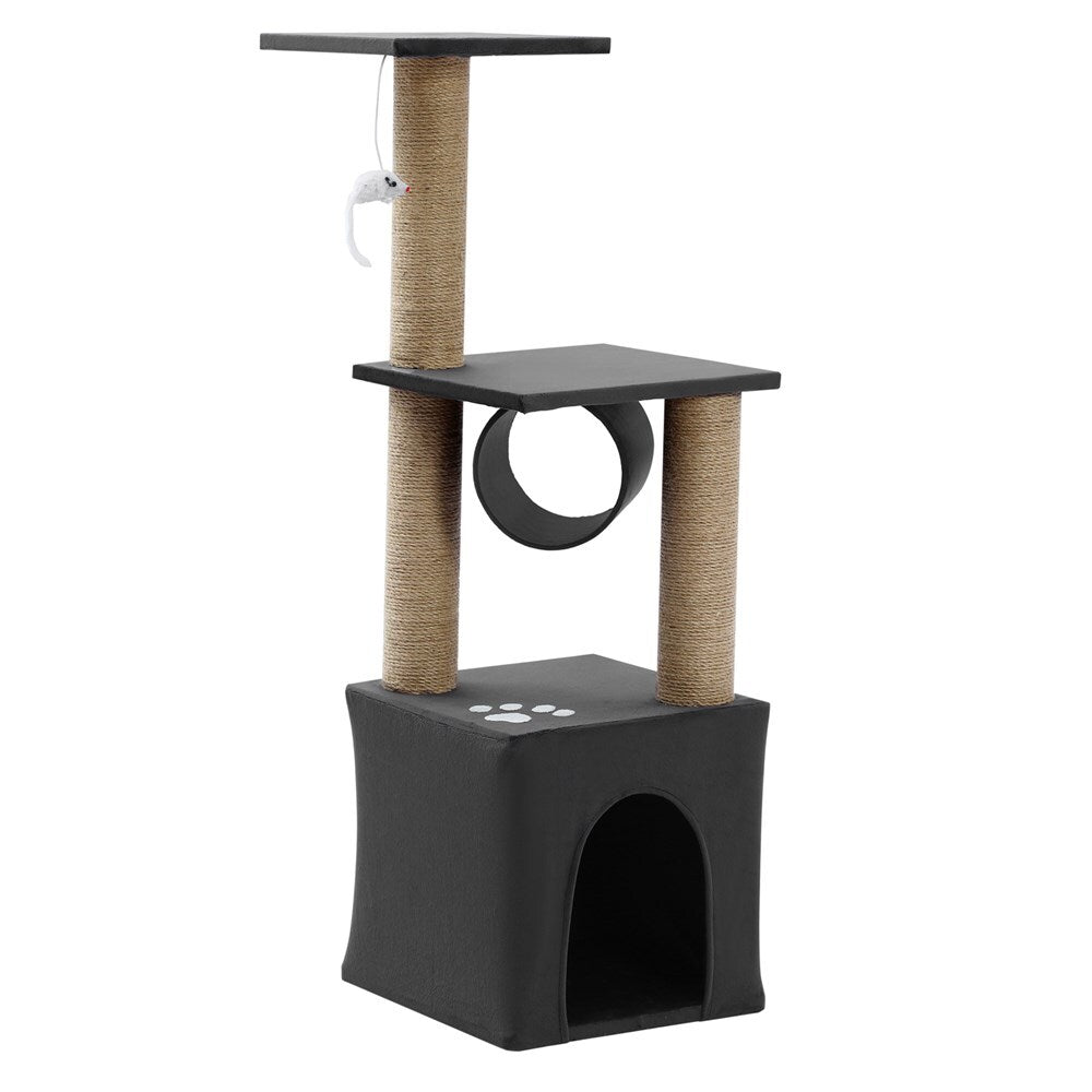 Support positive scratching behaviour with our Paws & Claws Catsby Elsternwick Cat Tree. Keep your cat entertained and occupied with this fun indoor activity. Our design is easy to assemble and features high quality plush covering, natural sisal covered scratching posts, hanging mouse toy and activity play tunnel for interactive fun, multiple viewing platforms, and a spacious hideaway for optimal comfort, all ideal for deterring your pet from scratching any furniture.
