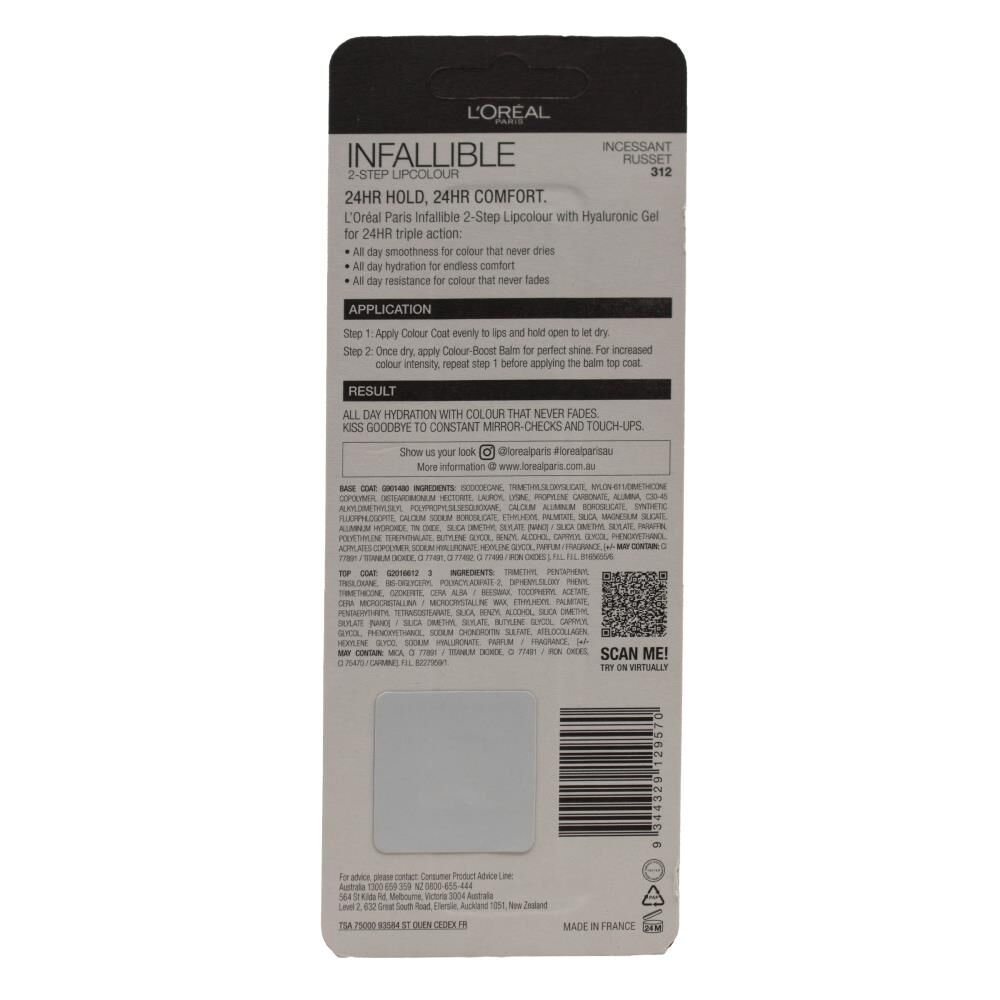 Loreal 5.7ml Lip Colour Infallible 2-Step Incessant Russet 312
