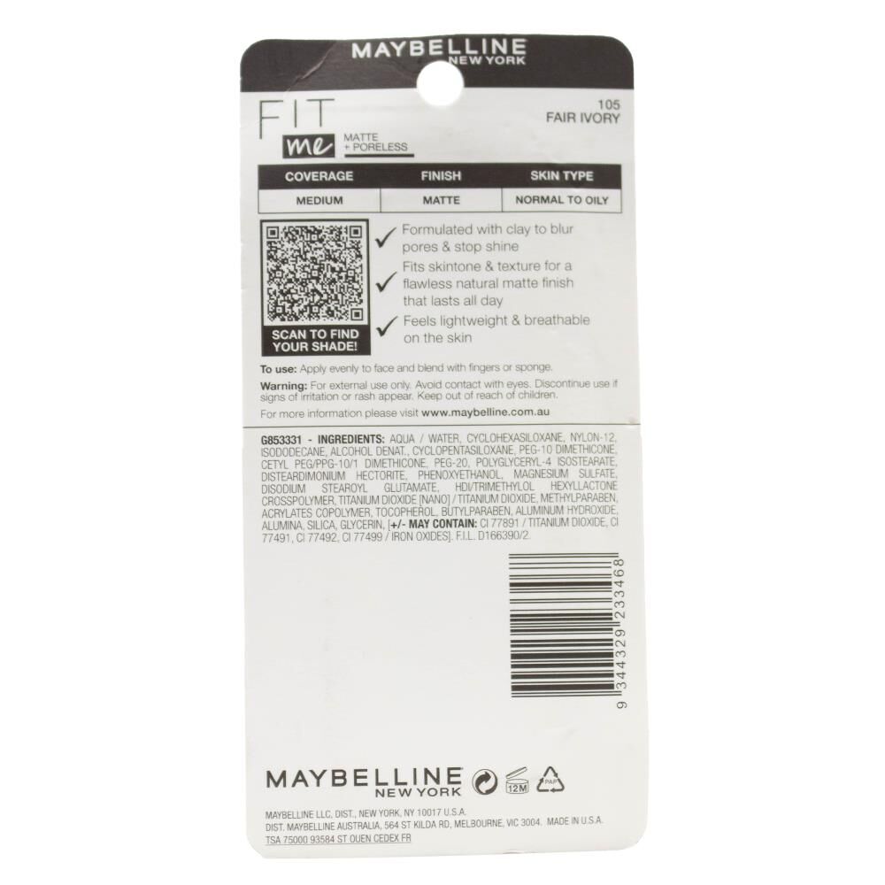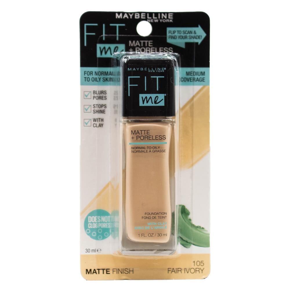 Maybelline 30ml Fit Me Matte + Poreless Foundation Carded - 105 Fair Ivory