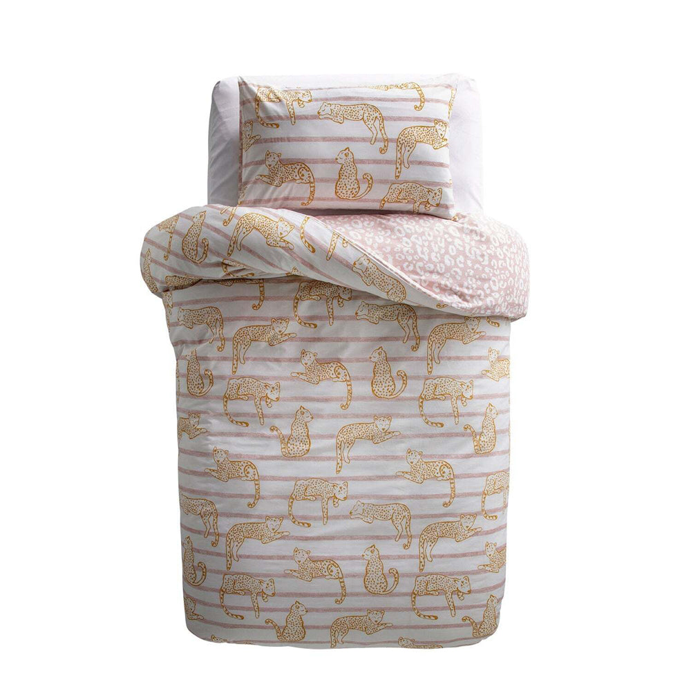 1 x Kas Kids Lazy Leopard Double Bed Quilt Cover Set w/ 2x Pillowcases - Multi