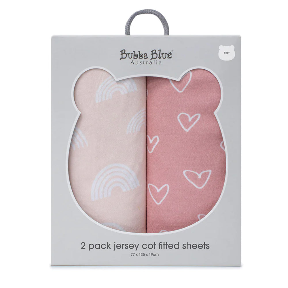 2PK Bubba Blue Nordic 77x135cm Jersey Cot Fitted Sheet Dusty Berry/Rose