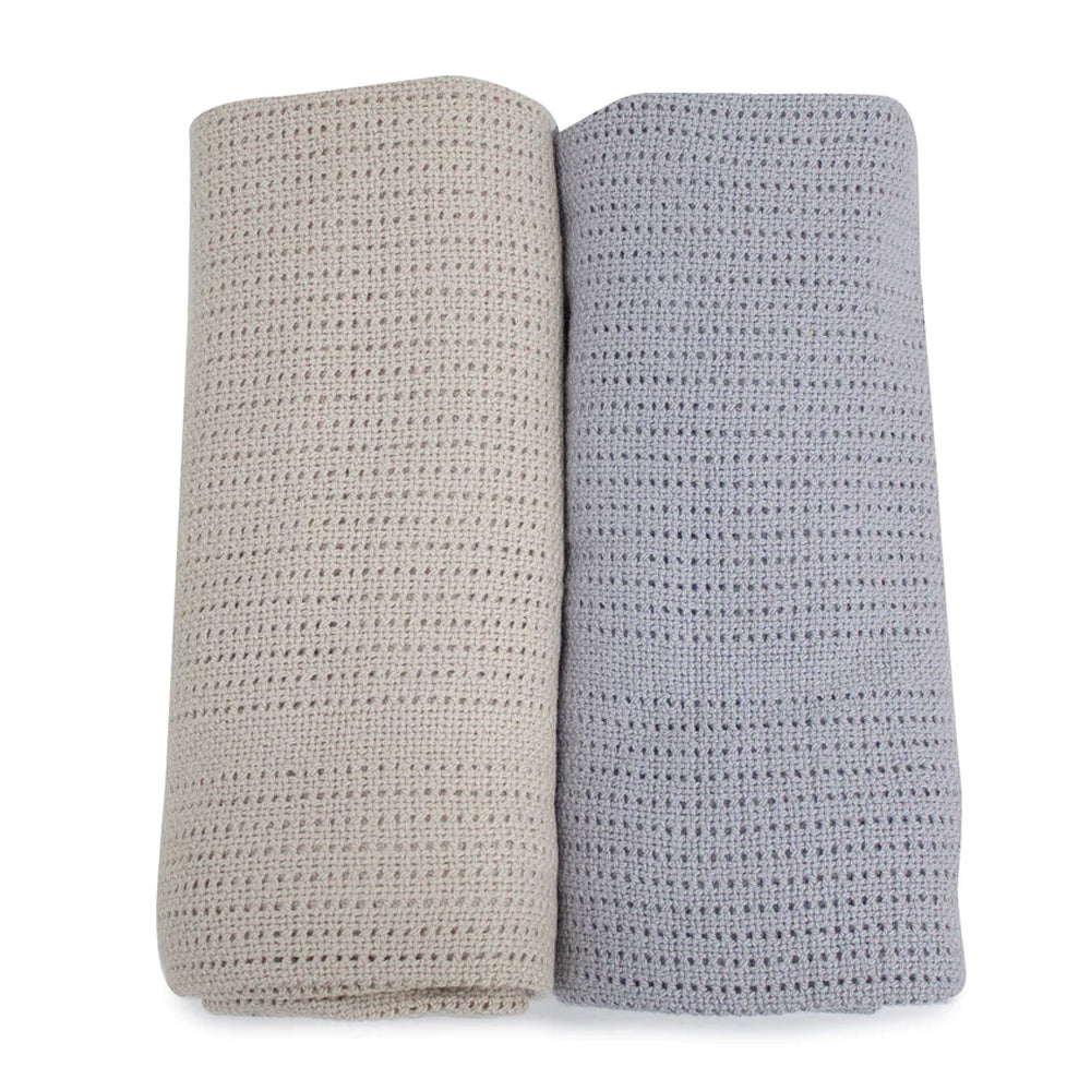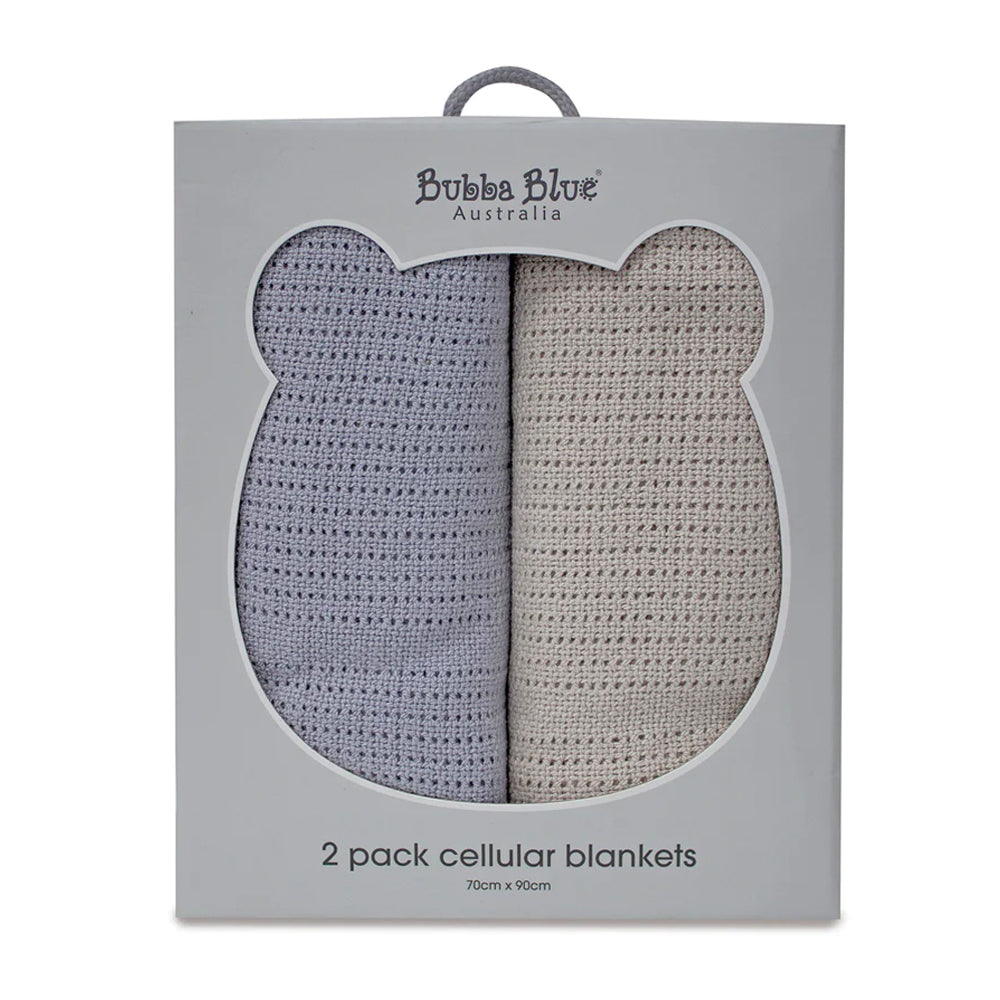 2PK Bubba Blue Nordic 70x90cm Cellular Blanket 0-12m - Grey/Sand