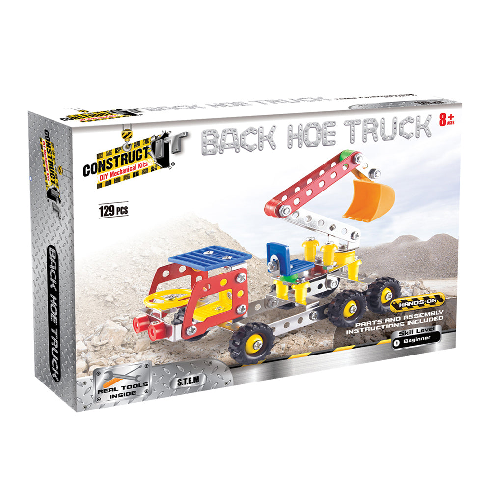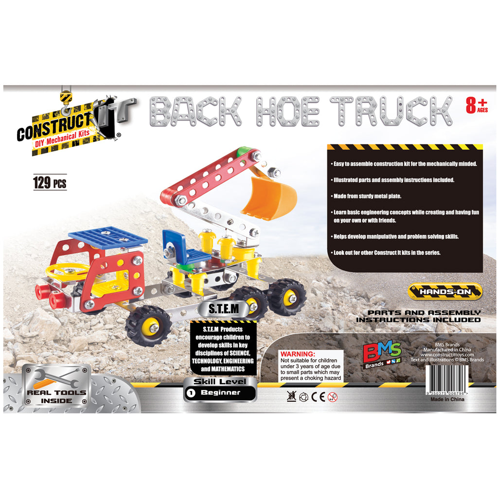 129pc Construct IT DIY Back Hoe Truck Toy w/ Tools Kit Kids 8y+